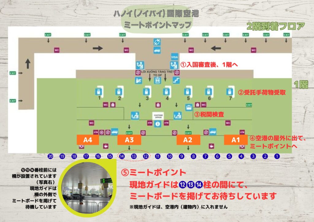 HOME > 空港・飛行機 > ハノイ空港国際線ガイドミート場所|ダウンロードできる資料 2025-12-24 ハノイ ノイバイ国際空港において、国際線でご到着された場合の、現地係員(ツアーガイド)とのミートポイントをまとめました。 Pocket LINE URLコピー よく読まれている記事 1 ベトナムへの理解が深まるおすすめの本|11選 /PR